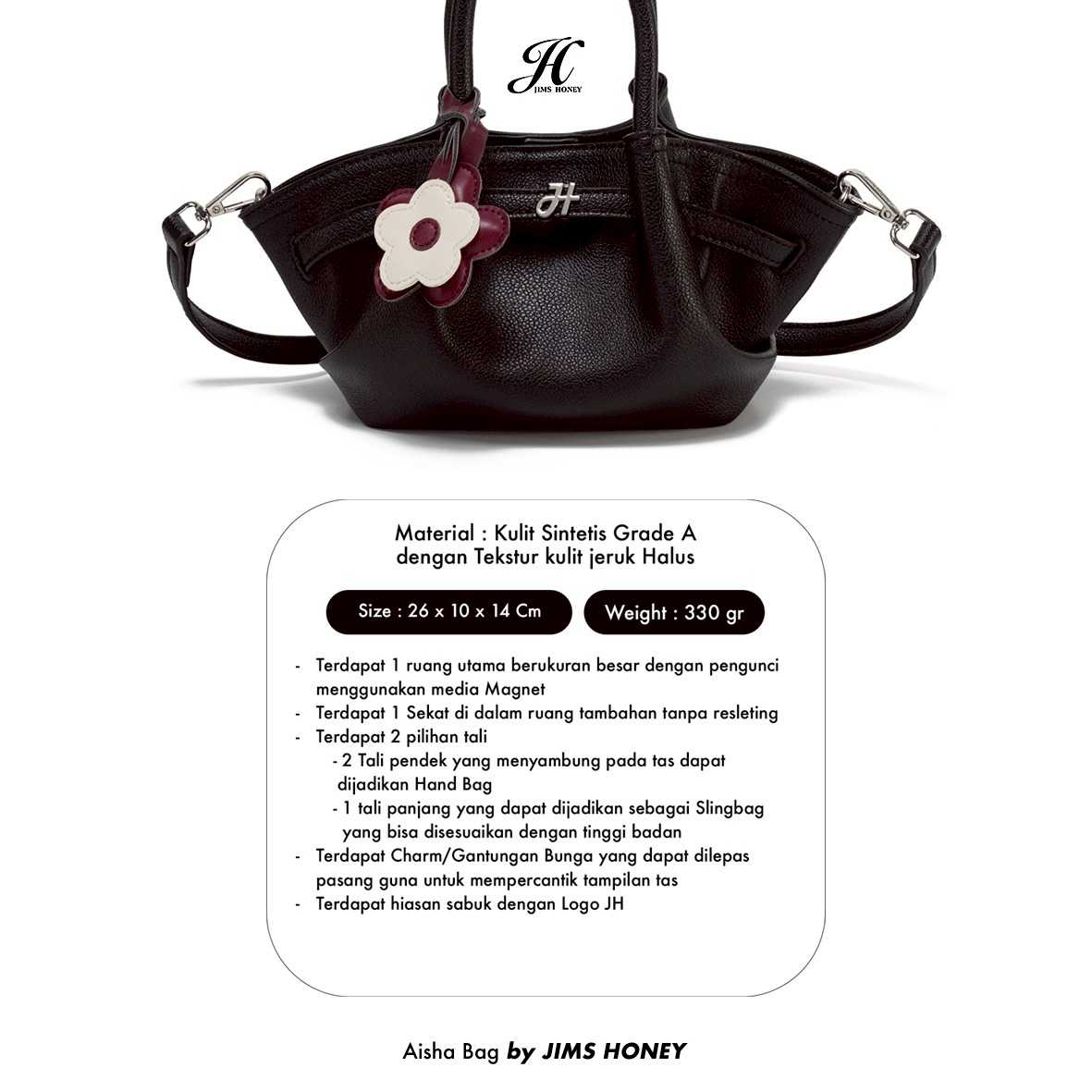JIMS HONEY was established in Indonesia since 2014, started as a trading company providing daily fashion item such as bag, wallet and timepiece with the company name as the brand itself. JIMS HONEY was founded with a vision to empower women around the world to express themselves freely through fashion. JIMS HONEY believes in social and environmental responsibility.