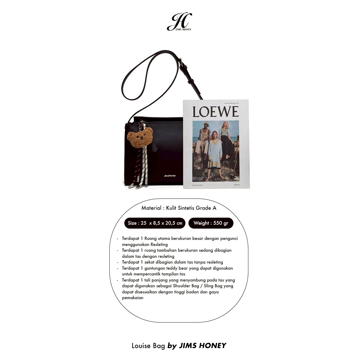 JIMS HONEY was established in Indonesia since 2014, started as a trading company providing daily fashion item such as bag, wallet and timepiece with the company name as the brand itself. JIMS HONEY was founded with a vision to empower women around the world to express themselves freely through fashion. JIMS HONEY believes in social and environmental responsibility.